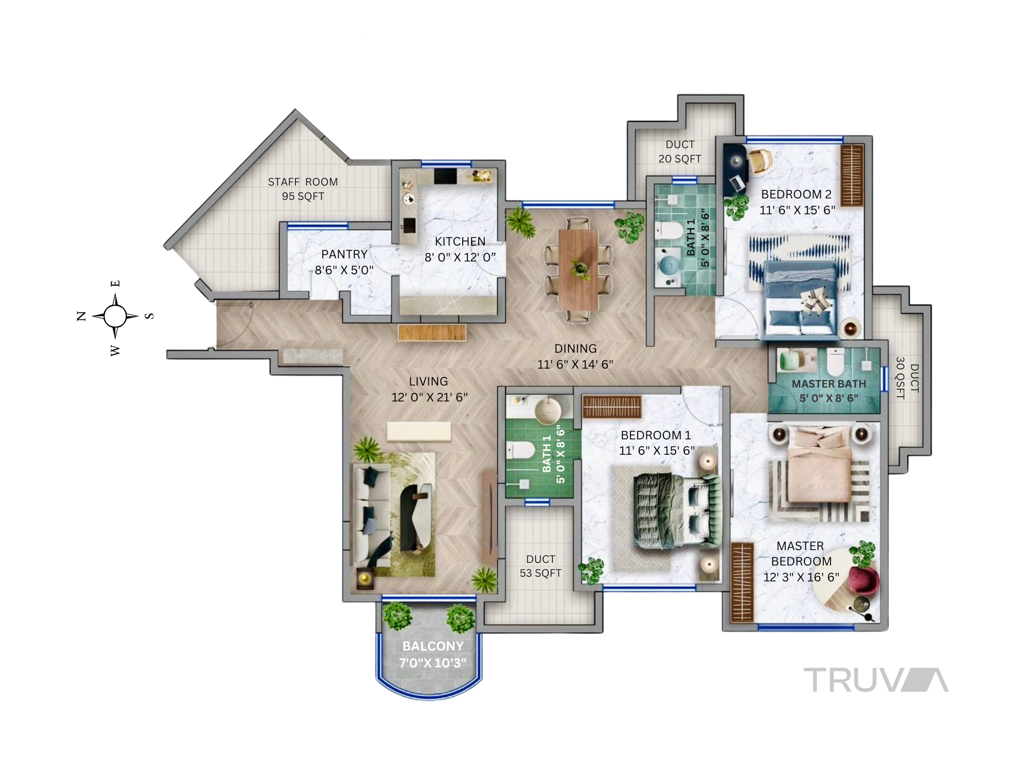 This spacious 3-bedroom, 3-bathroom north-facing apartment on the 14th floor offers stunning lake and city views. It features large ducts in every bathroom, staff quarters, and access to the luxurious Hiranandani Forest Club and Racquet Club. Conveniently located near retail centers, schools, and hospitals, it boasts excellent connectivity (3 km to JVLR, 4.5 km to Eastern Express Highway, and 8 km to the airport). Additionally, the nearby street is lined with top restaurants and cafes.